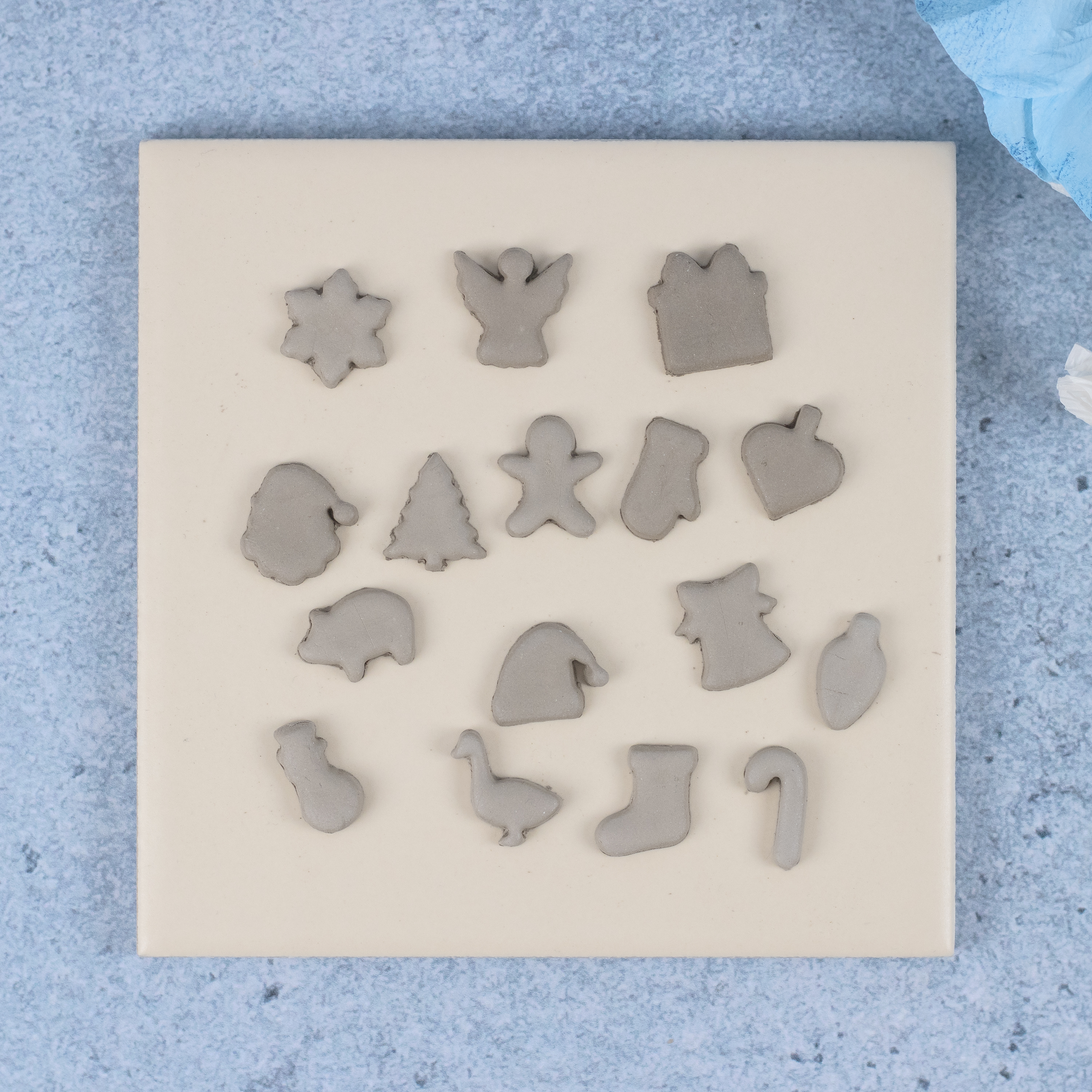 Sættet indeholder: Julestok, julemand, snemand, snefnug, sukkerstok, julehjerte, gås, gave med sløjfe, klokke med sløjfe, kagemand, juletræ, engel, nissehue, handske, julesok og julelys.