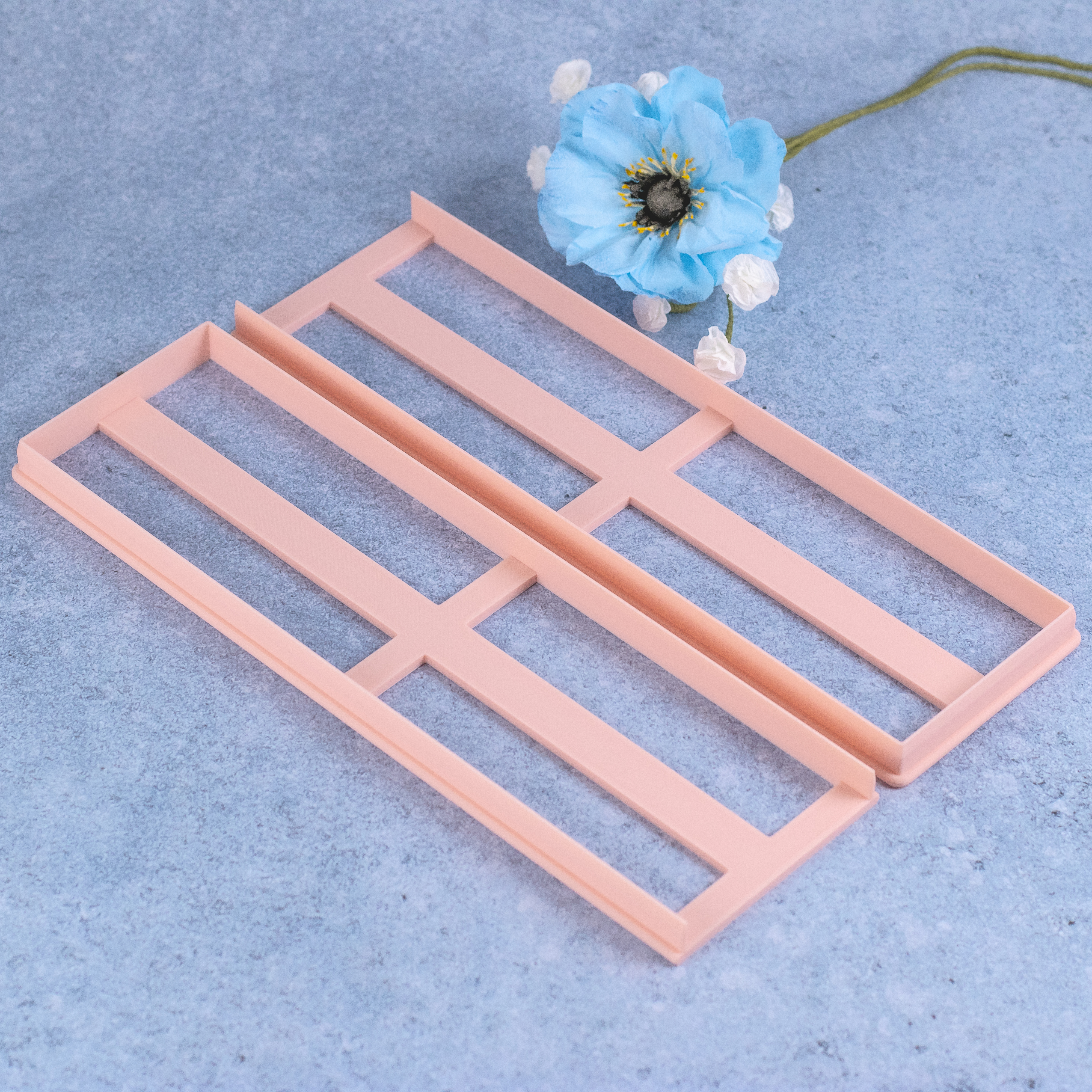 Nogle skabeloner er delt i to udstikkere, da de ellers bliver for lange til at printe. Disse 2-delte skabeloner, udstikker kun hver på 3 sider, og sættes op ad hinanden når der udstikkes, så den fulde skabelon udstikkes som ét stykke.