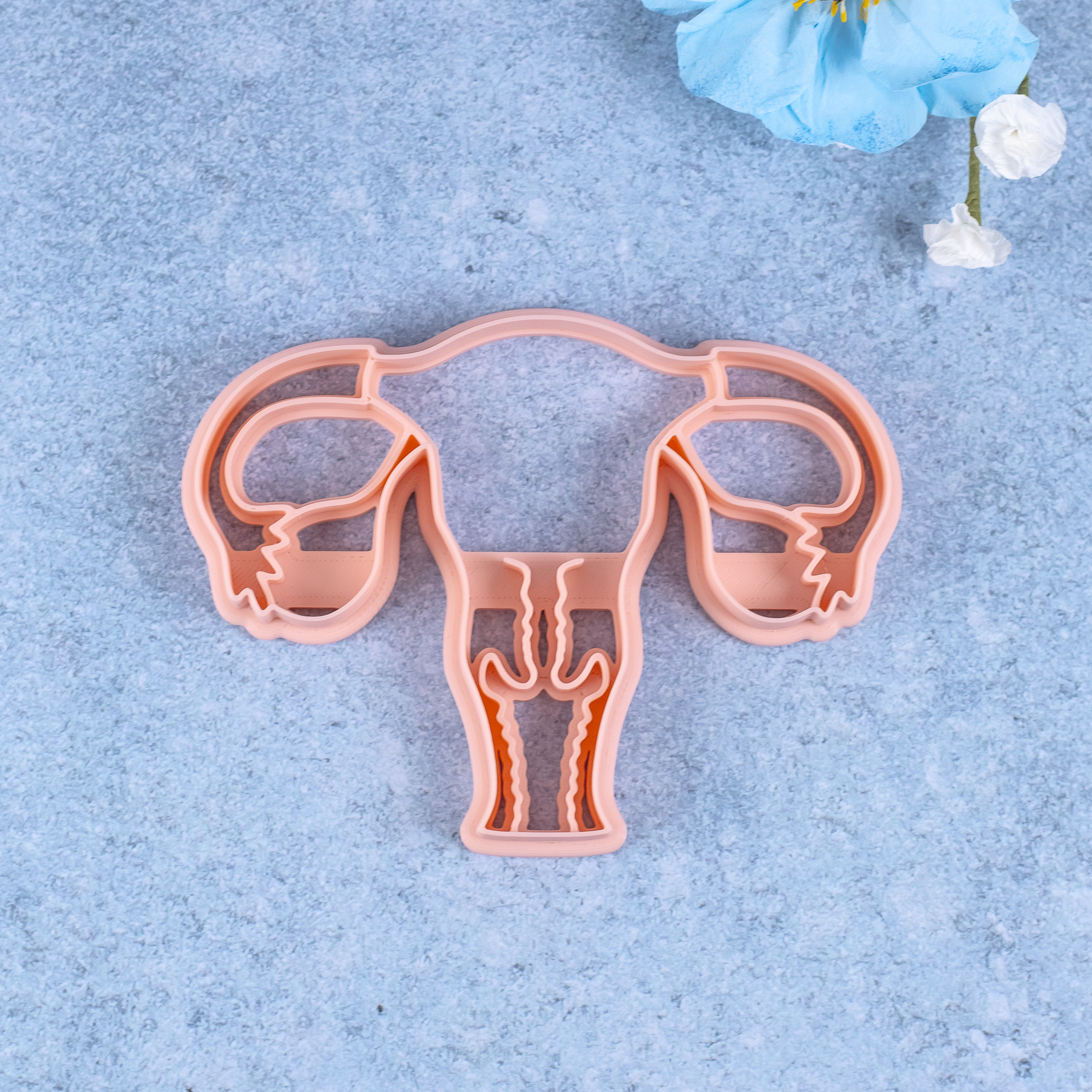 Denne livmoder udstikker med prægning er en kombination af livmoder design 1 og 2, med tom plads i toppen, hvor der kan stemples tekst. Teksten på billedet er lavet med et stempel. Stemplet kan købes alene, eller som en pakke med udstikker og stempel.