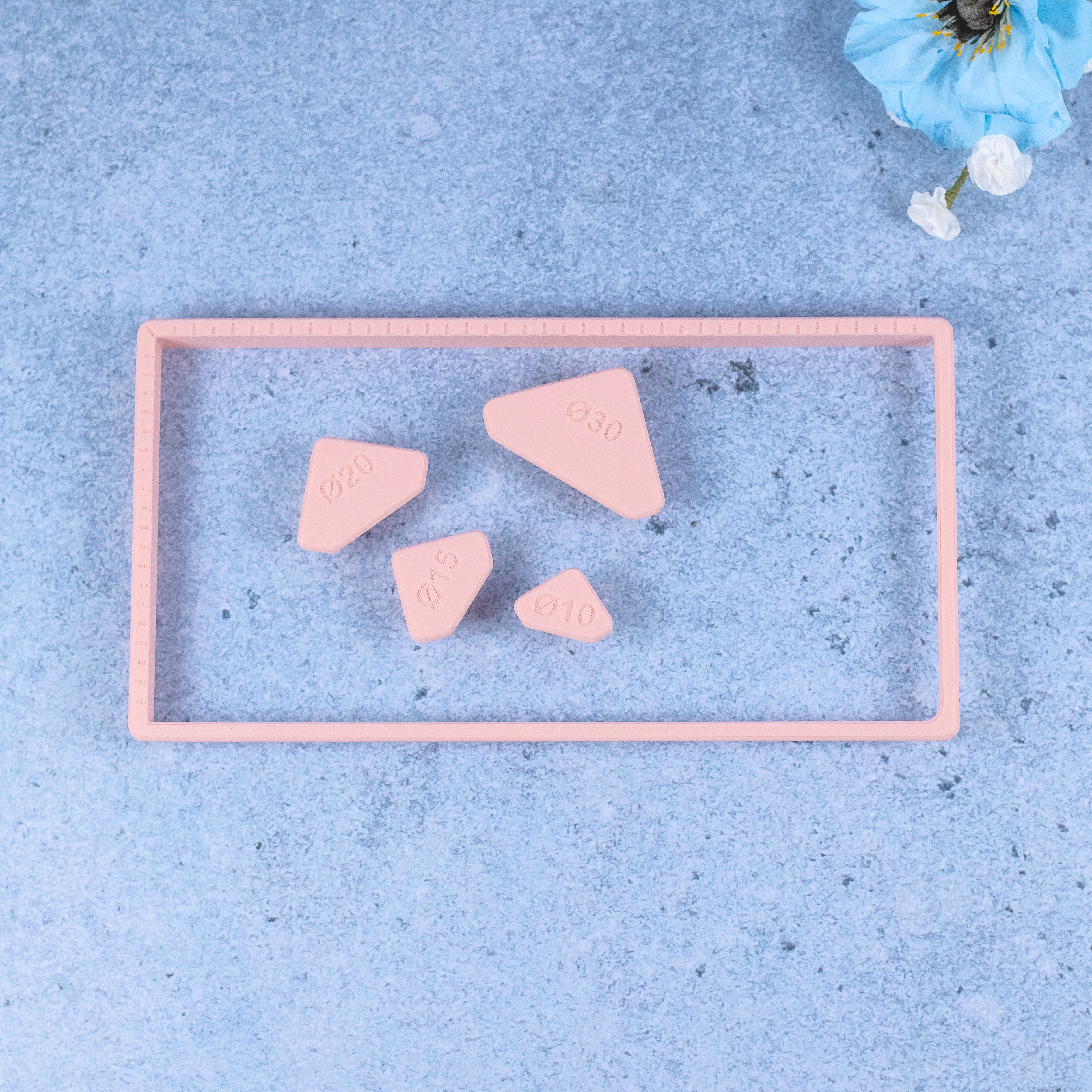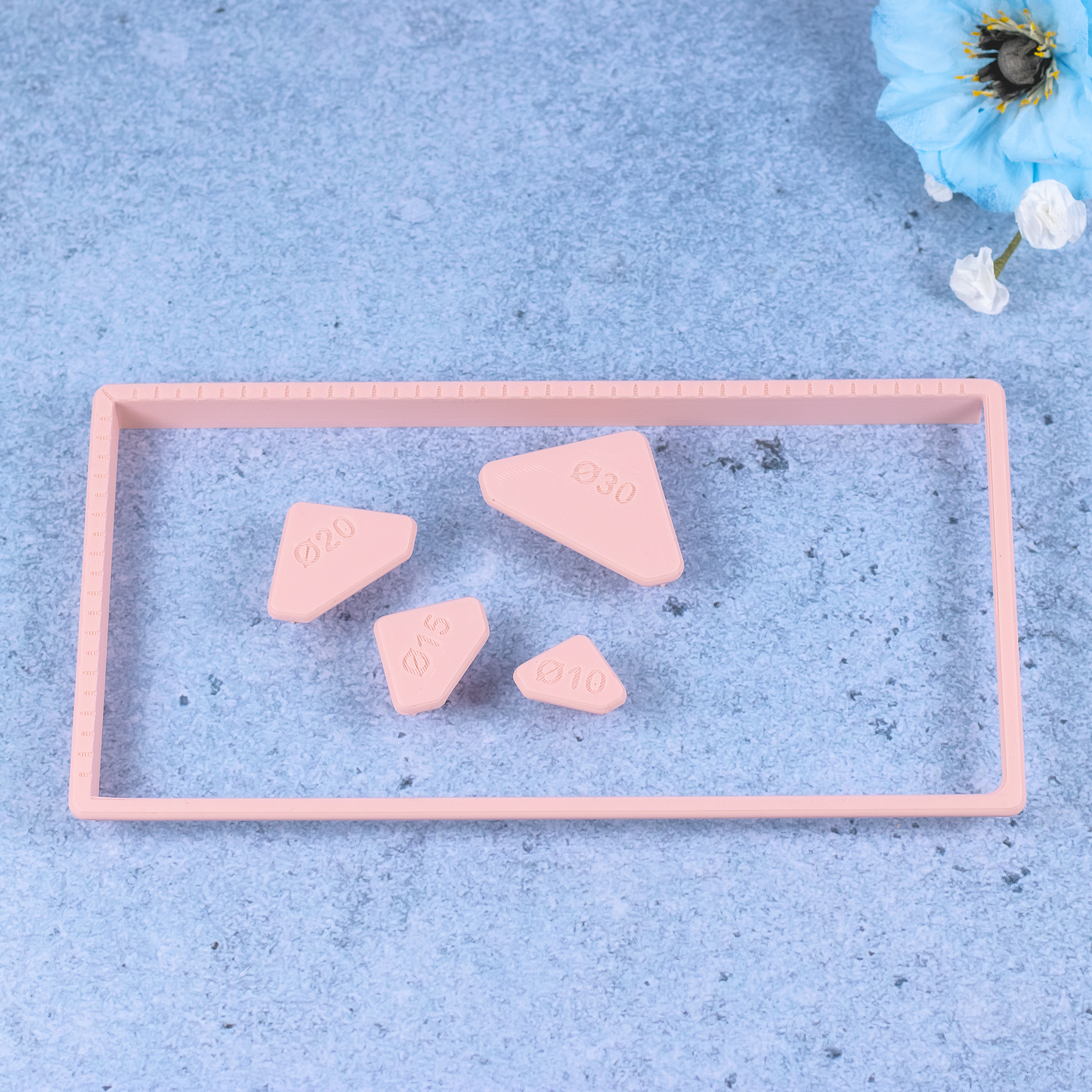 - 4 hjørner: Ø10mm, Ø15mm, Ø20mm, Ø30mm
