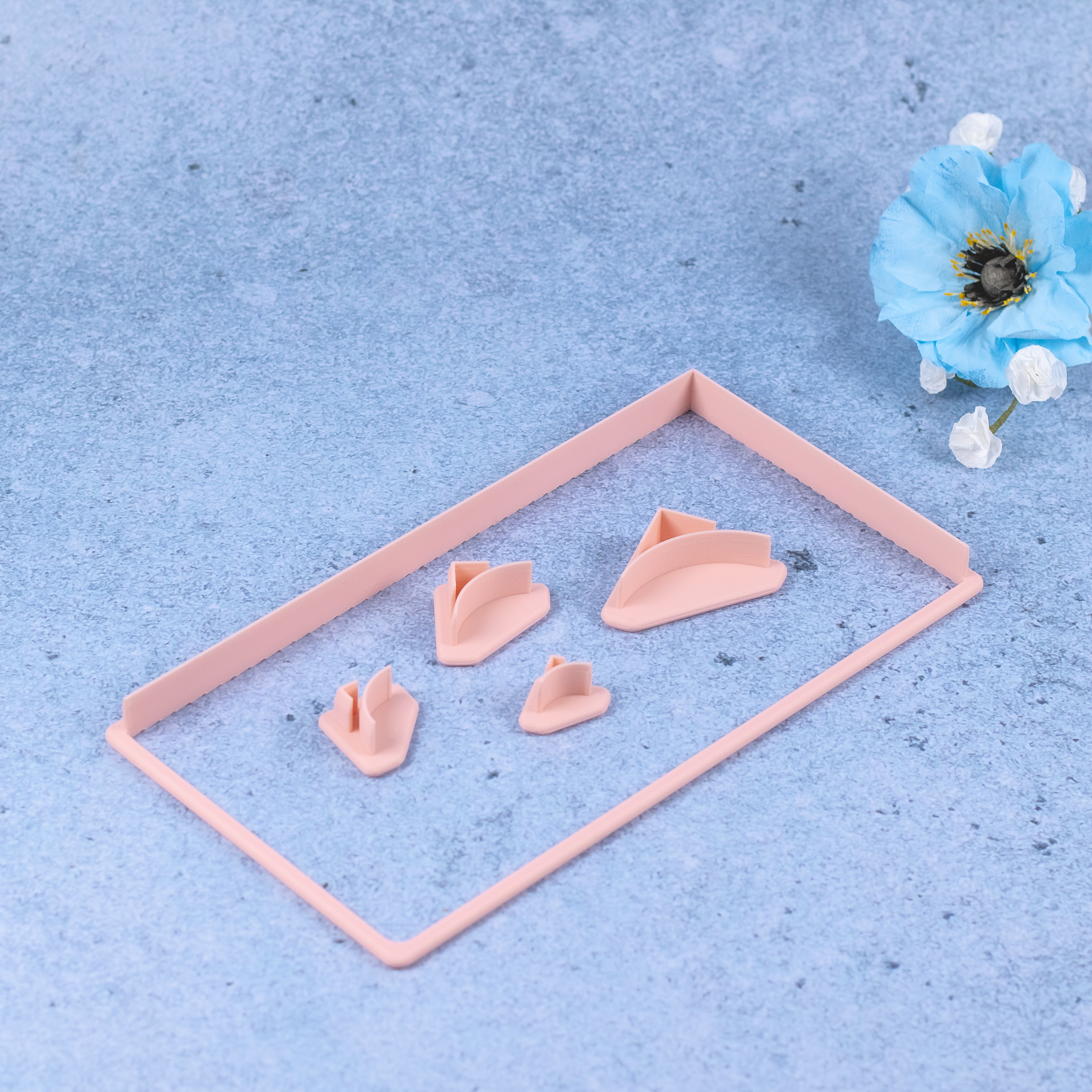 Denne vinkeludstikker, har kun udstikker/skær på to af siderne. Den bruges til at udstikke en retvinklet firkant i din ønskede størrelse, og efterfølgende kan du bruge hjørnerne til at lave afrundede hjørner.