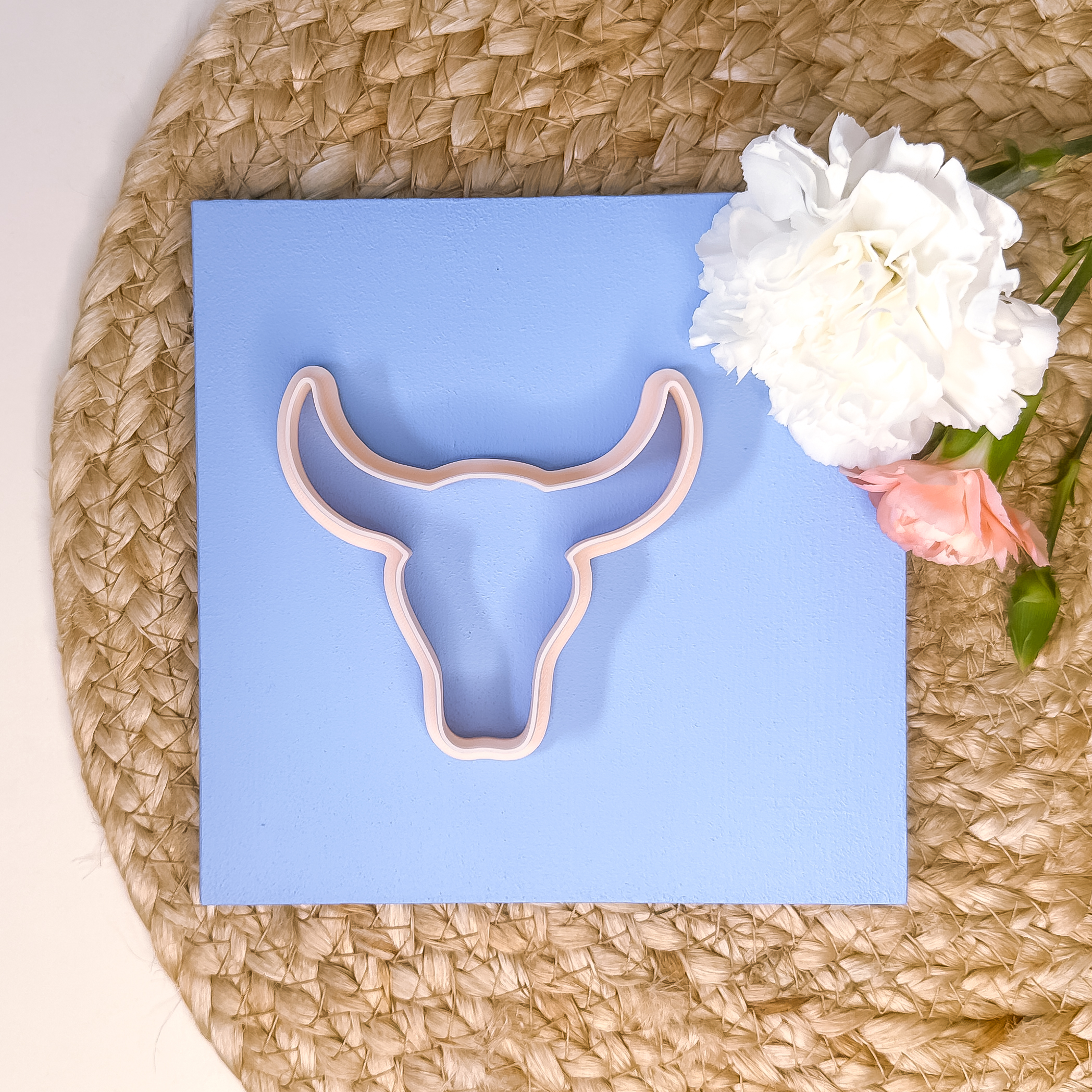 Denne tyre kranie udstikker måler 80x74mm. Udstikkeren er lavet ud fra en håndtegnet illustration.