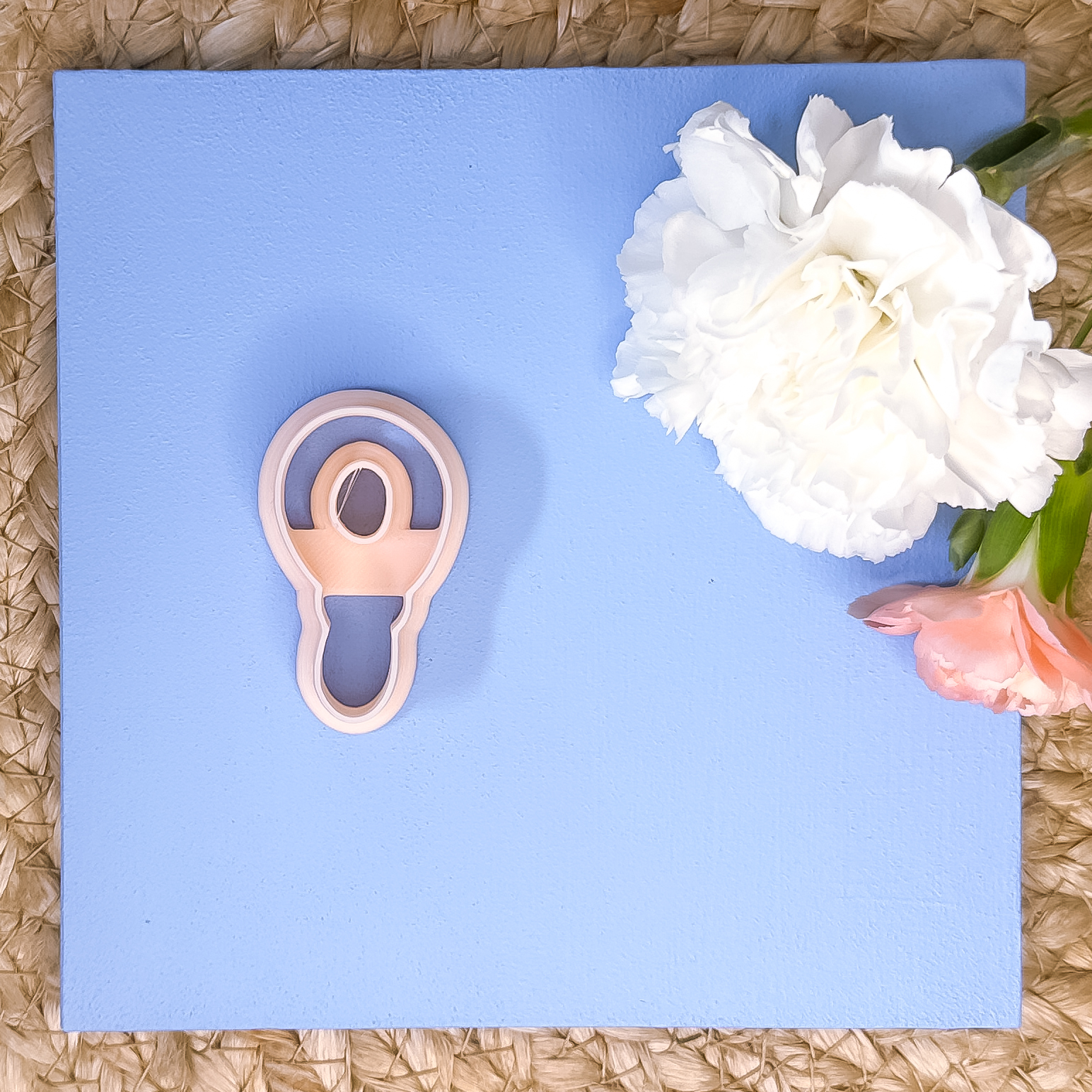 Denne slik vingummi sut udstikker måler 45x25mm. Udstikkeren udstikker hullet i sutten helt. Udstikkeren er lavet ud fra en håndtegnet illustration.