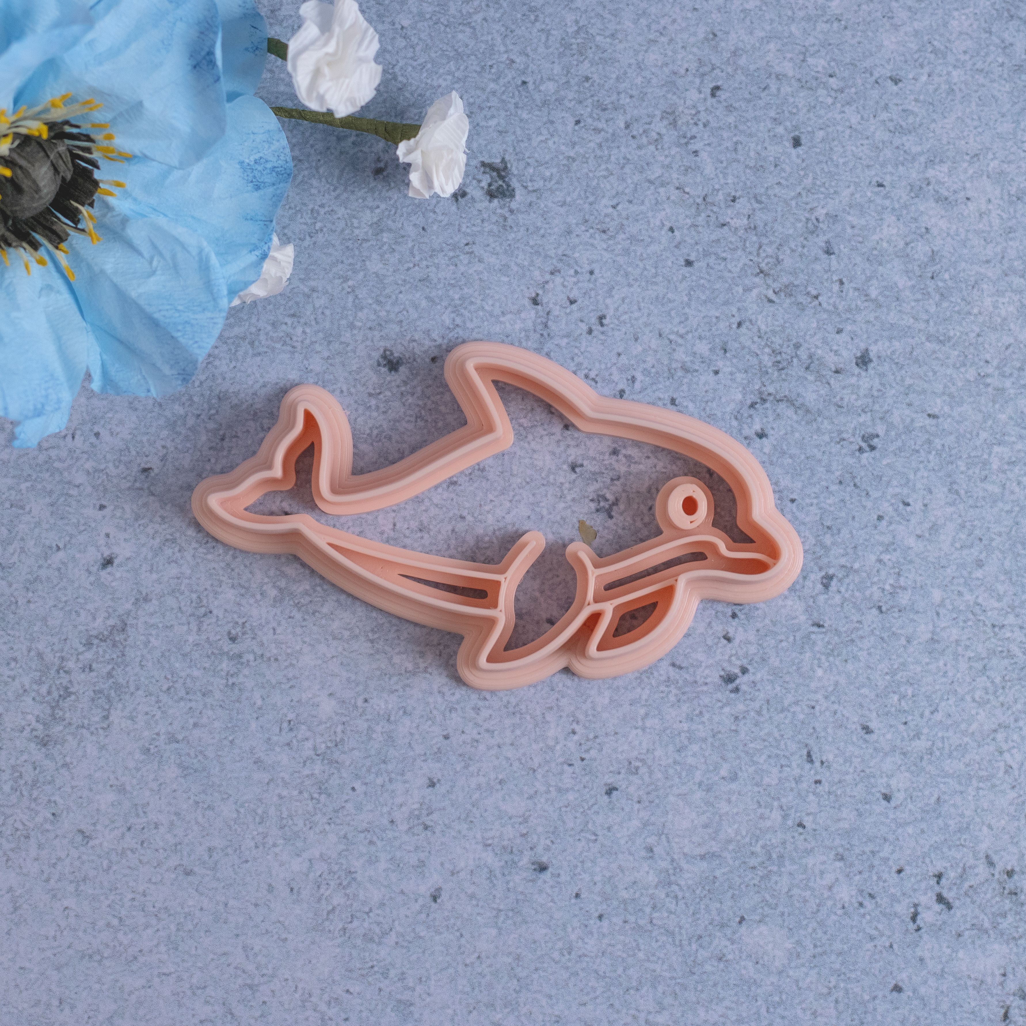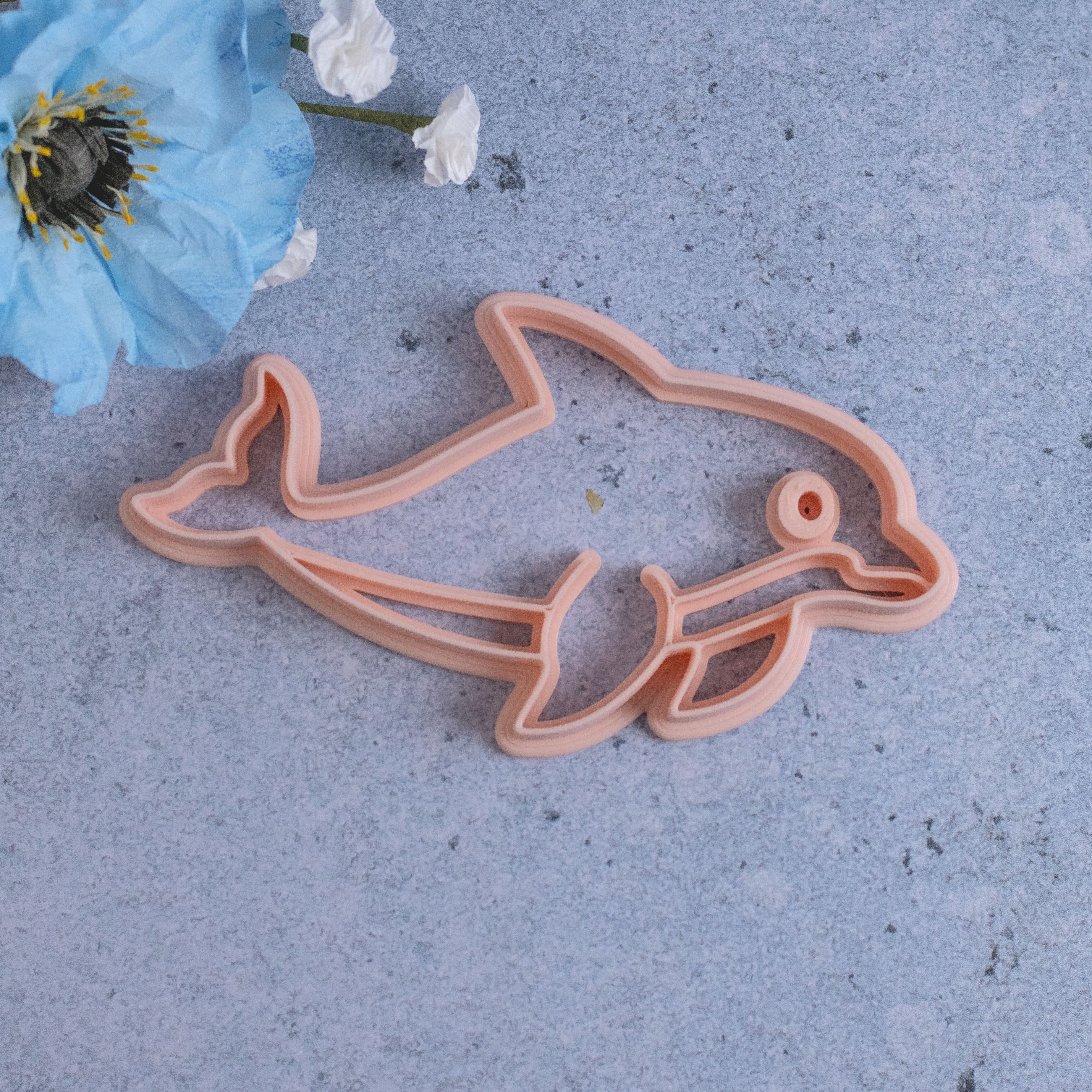 Denne delfin udstikker med prægning fåes i flere størrelser.