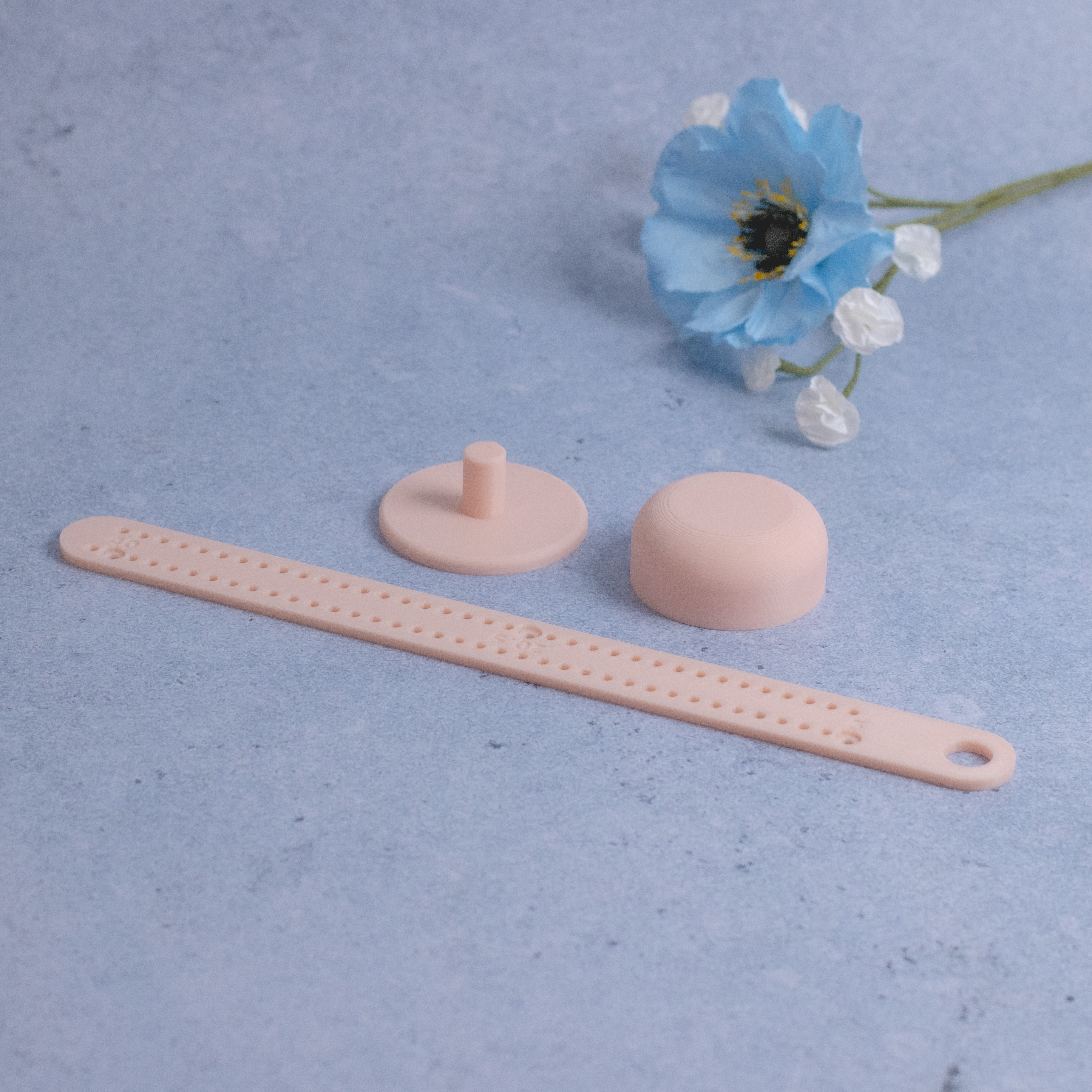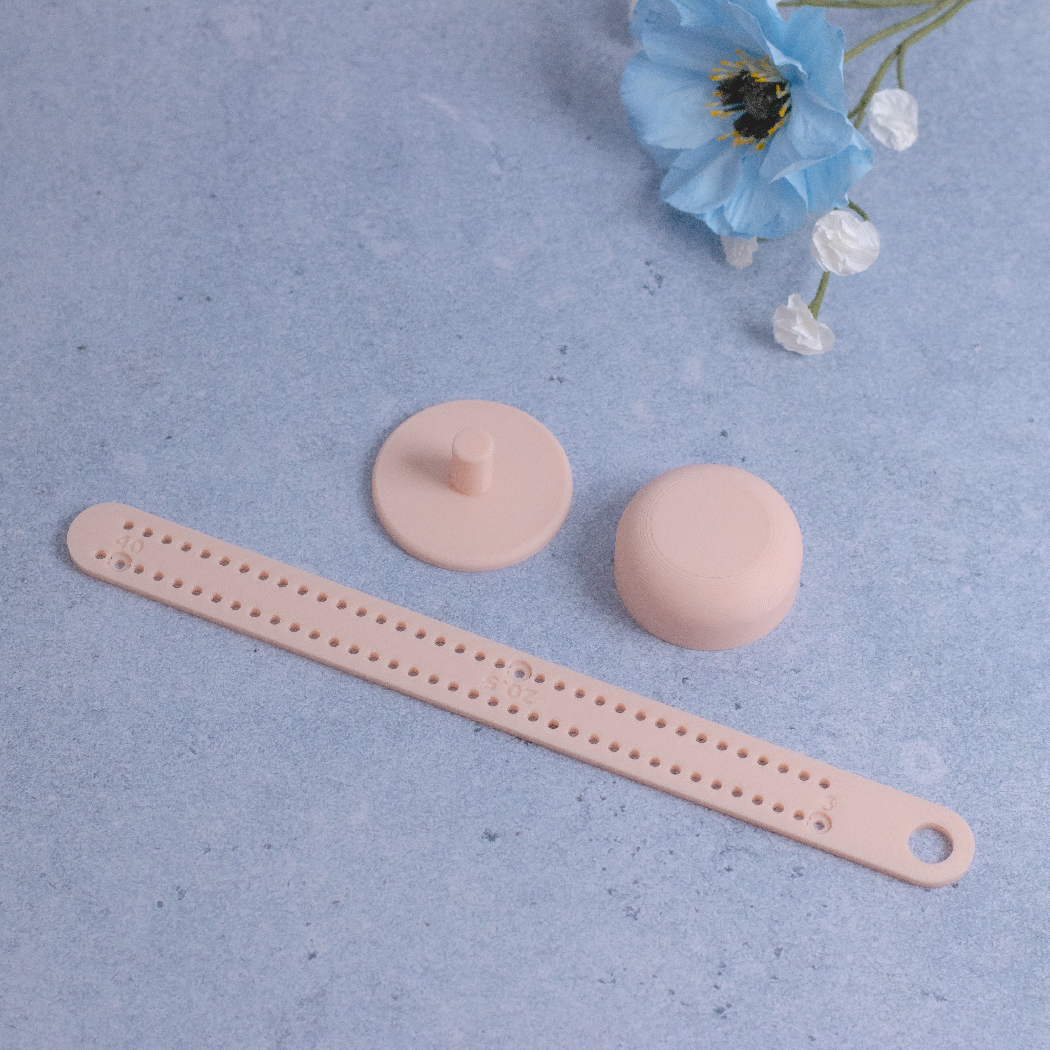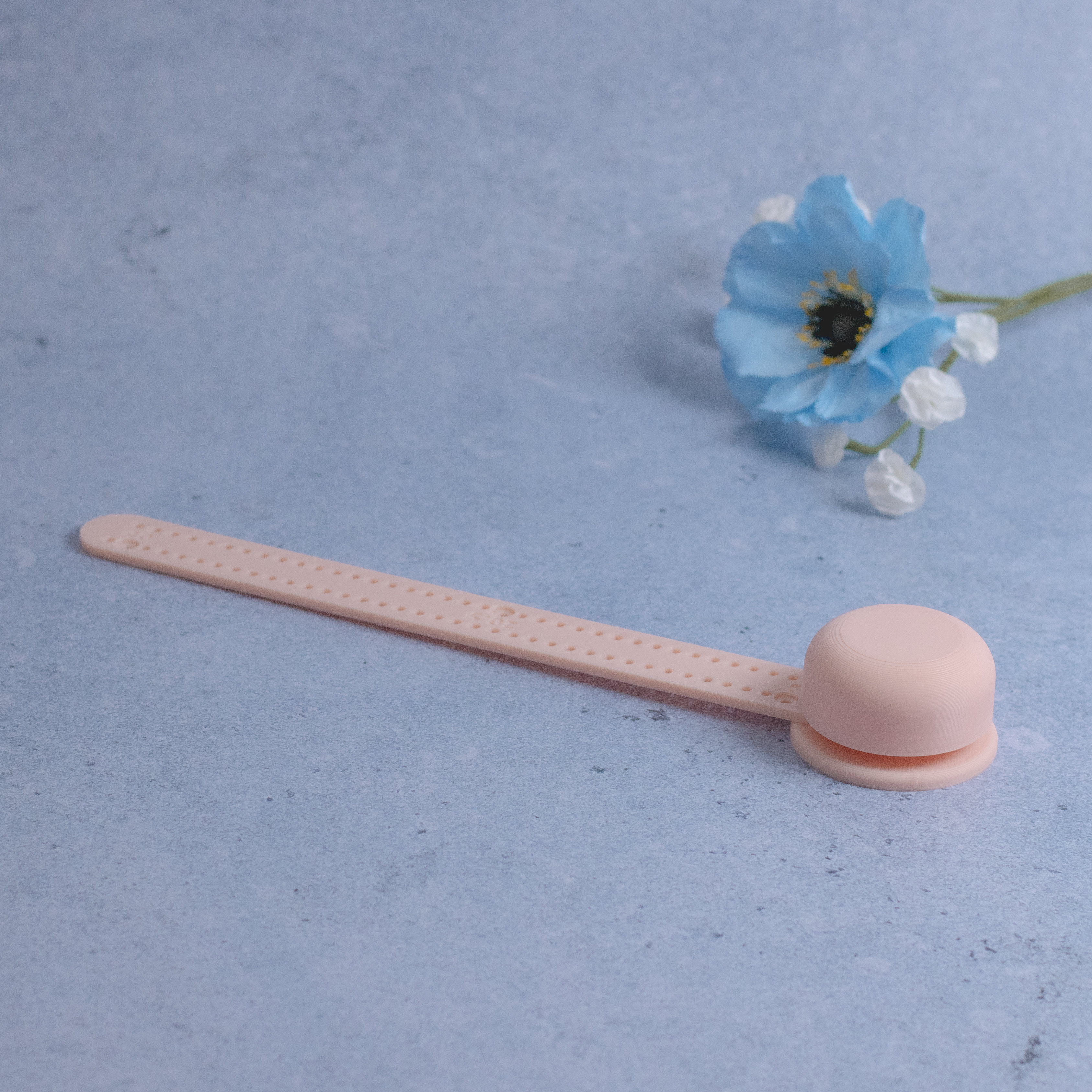 Cirkelmarkøren er et alternativ til runde udstikkere. Den bruges ved at sætte stangen på den lille fod, og dernæst sættes hætten ovenpå. Du placerer markøren på dit ler, og med et nåleværktøj kan du nu markere/skære en cirkel med en diameter fra 5cm til 41cm. På den ene side af pinden er der huller til at lave cirkler med hele cm, på modsatte side af pinden er der huller til at lave cirkler med halve cm.