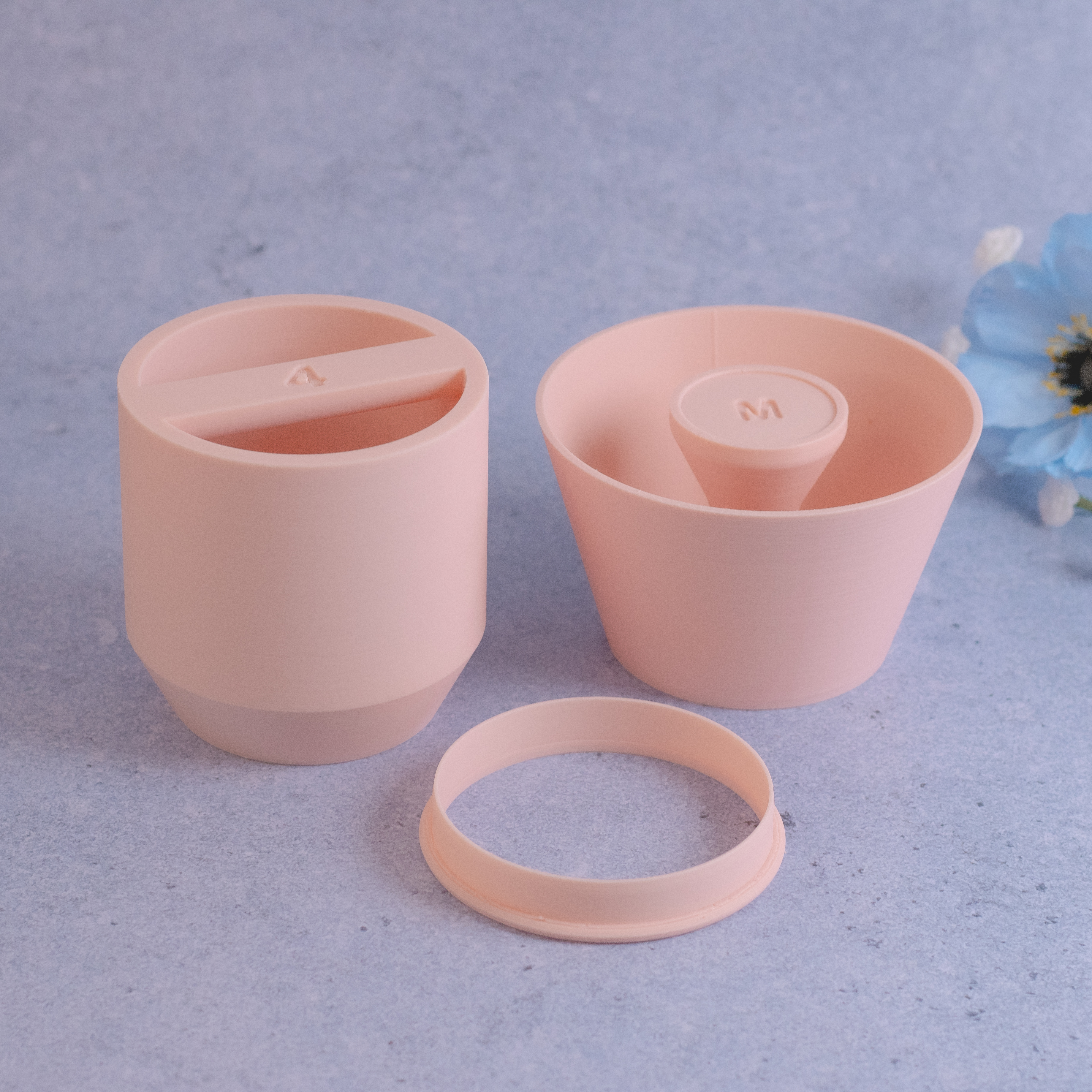 Top Ø80mm, bund Ø60mm, højde 80mm.