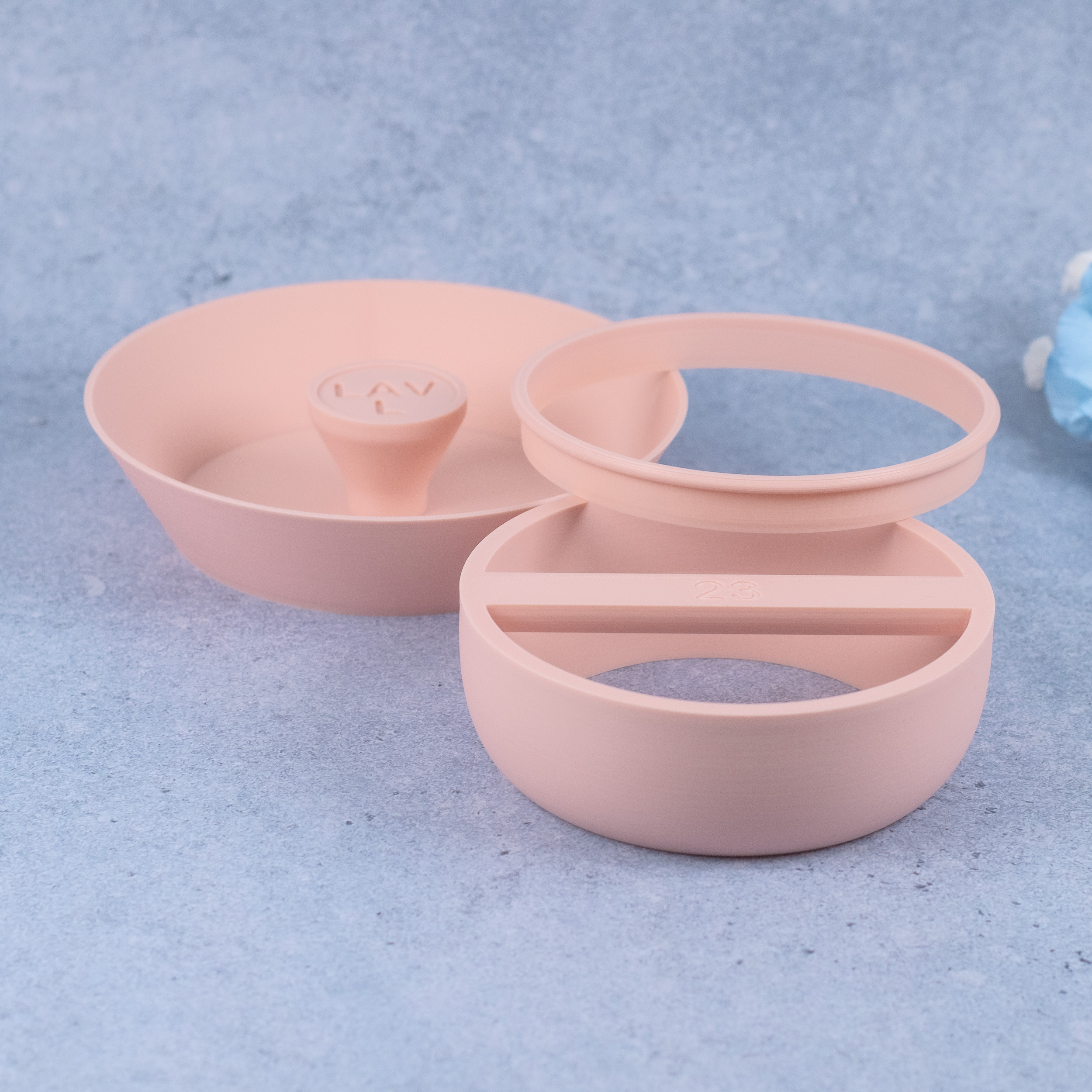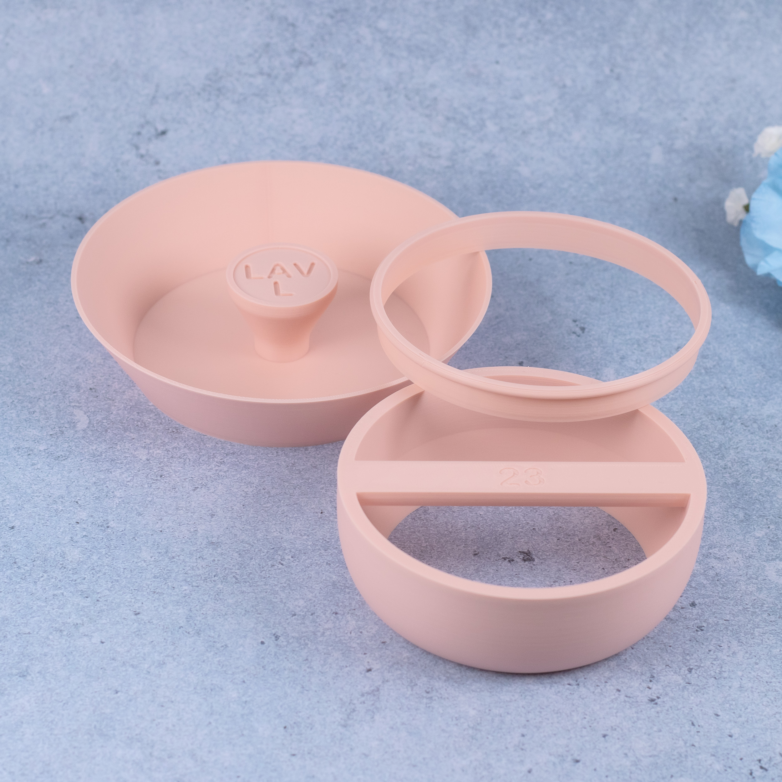 Top Ø150mm, bund Ø150mm, højde 60mm.