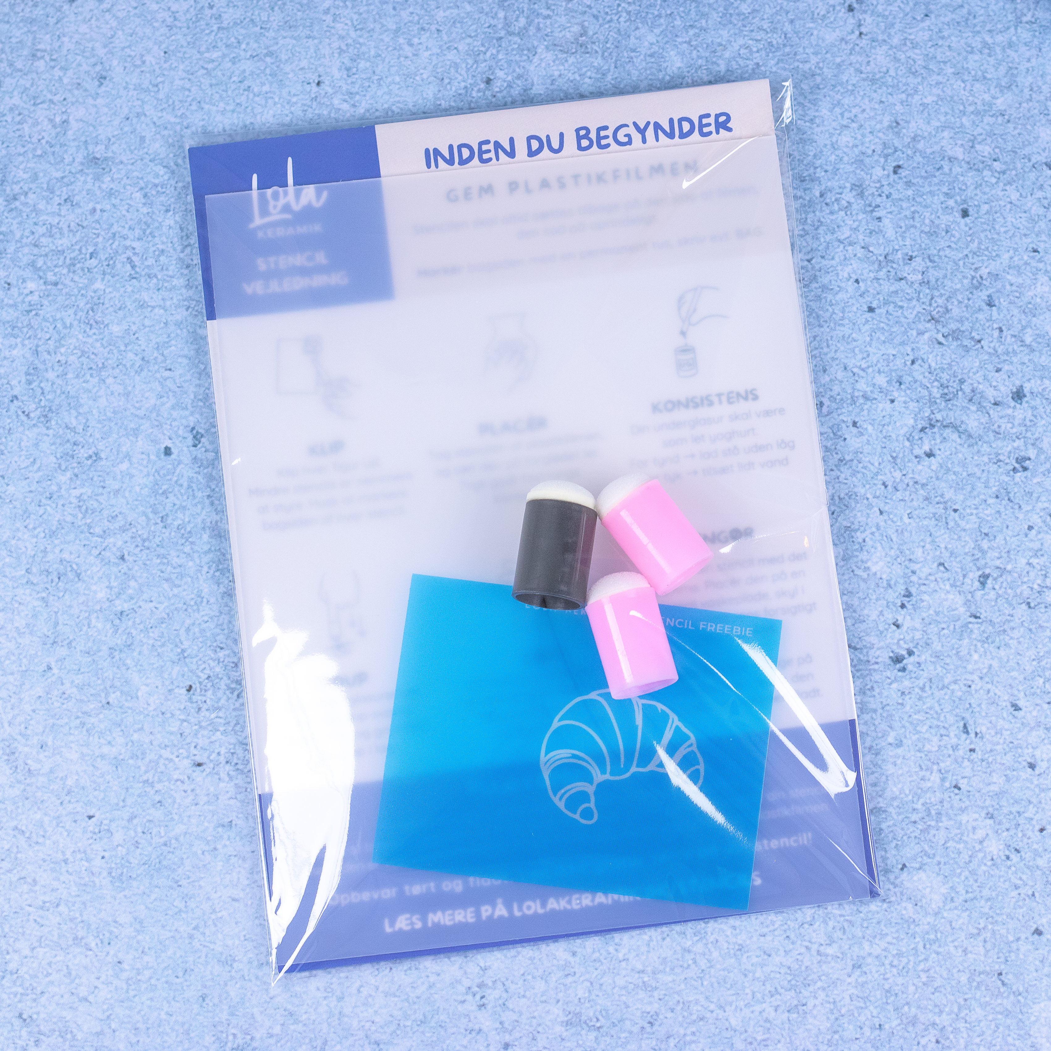 Med dette startkit, kan du komme igang med at bruge stencils med det samme - det eneste du selv skal have, er underglasur.