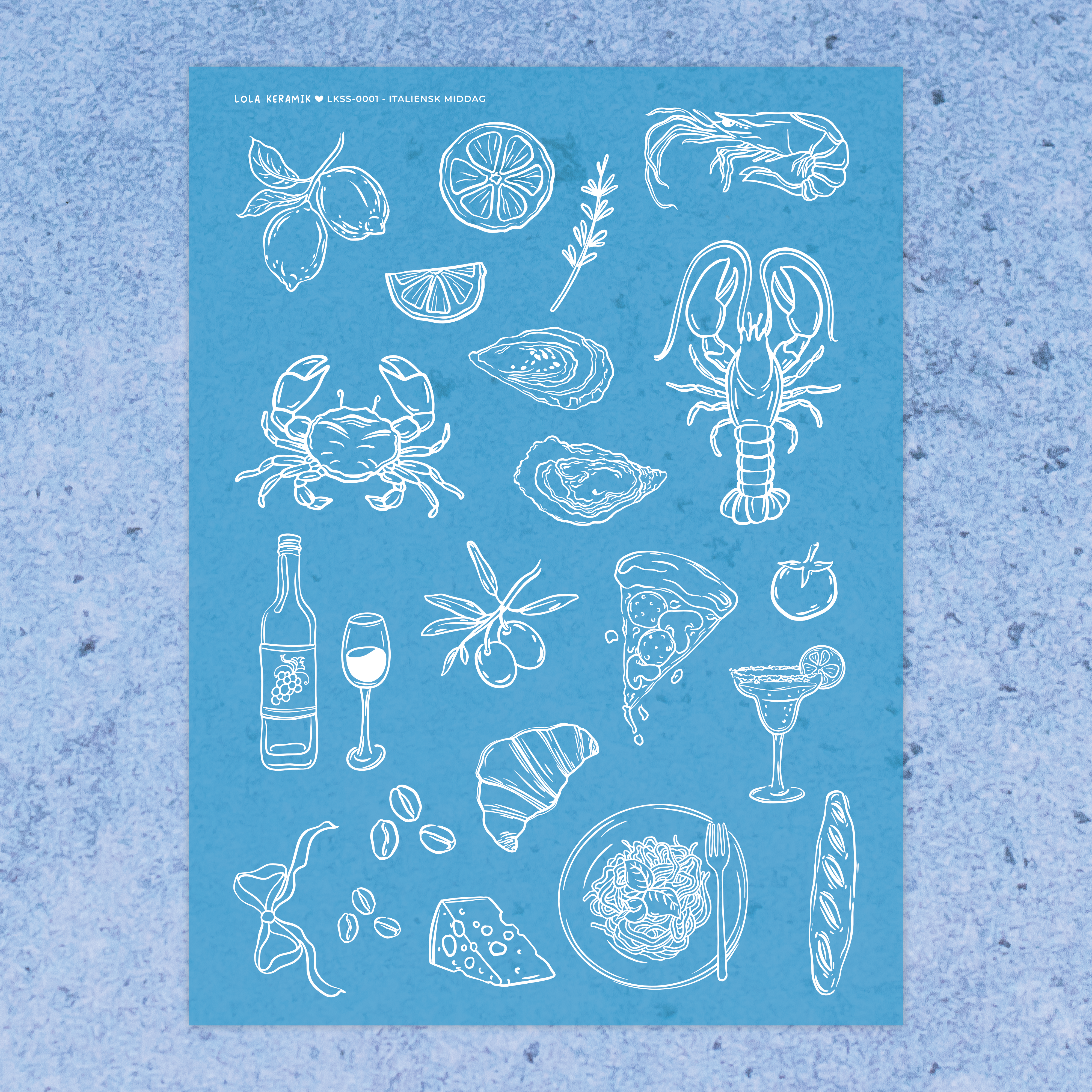 - Den spejlvendte variant, bruges hvis du vil lave en to-trins transfer. Dvs. hvis du først påfører din underglasur på f.eks. rispapir eller gellipad, for derefter at overføre til dit emne. Denne metode er mere avanceret, og kræver ofte at der iblandes et medium i underglasuren, for det bedste resultat. Jeg vejleder ikke i denne metode - det er til dig der vil lege og eksperimentere selv.